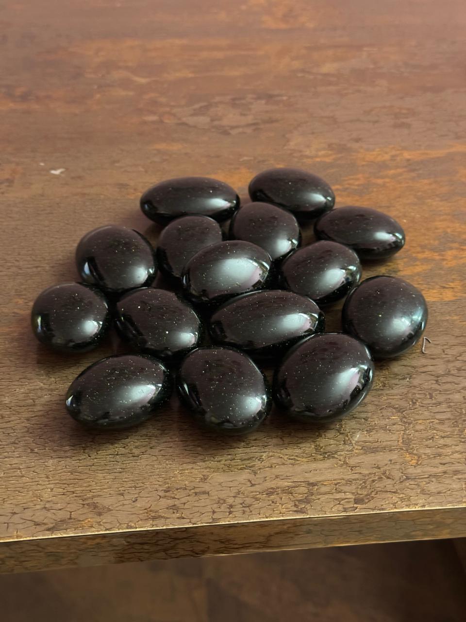 The Blue Goldstone Palm Stone is a polished gemstone known for its shimmering, deep blue color interspersed with sparkling flecks of copper or gold. This synthetic stone, created by infusing glass with copper particles, has a captivating and mesmerizing appearance. The smooth, rounded shape of the palm stone makes it comfortable to hold and ideal for use in meditation, energy work, or as a decorative piece. Blue Goldstone is valued for its uplifting and energizing properties, offering a range of benefits for personal well-being.