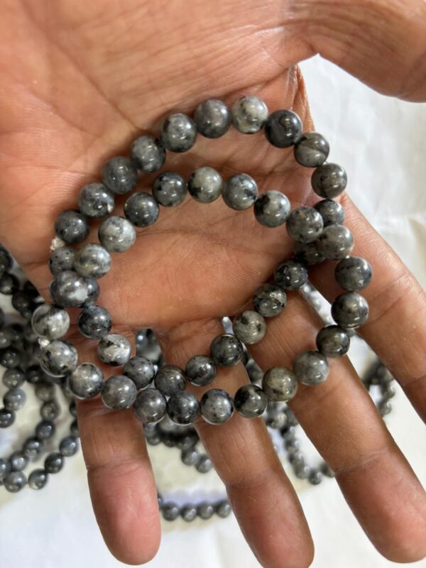 The Larvikite Mystic Bracelet features beads made from larvikite, a beautiful dark gray to black stone with silver-blue flashes known as “schiller” or “labradorescence.” This unique optical effect makes each bead appear to shimmer and change color depending on the light and angle. The bracelet can be crafted in a minimalist style or enhanced with metallic elements and complementary gemstones.