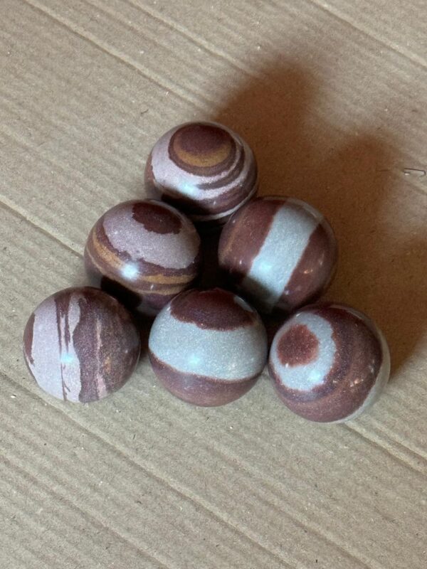Narmada River Stone, also known as Narmadeshwar Shiva Lingam, is a unique variety of cryptocrystalline quartz found in the Narmada River in India. These stones are naturally formed in the riverbed and are revered as sacred symbols of the Hindu god Shiva. Narmada River Stones are characterized by their smooth, oval shape and distinctive markings, often resembling a lingam, a symbol of divine energy and fertility in Hinduism. When polished into a sphere, Narmada River Stone’s natural beauty and spiritual significance are enhanced, making it a popular choice for both its aesthetic appeal and metaphysical properties.