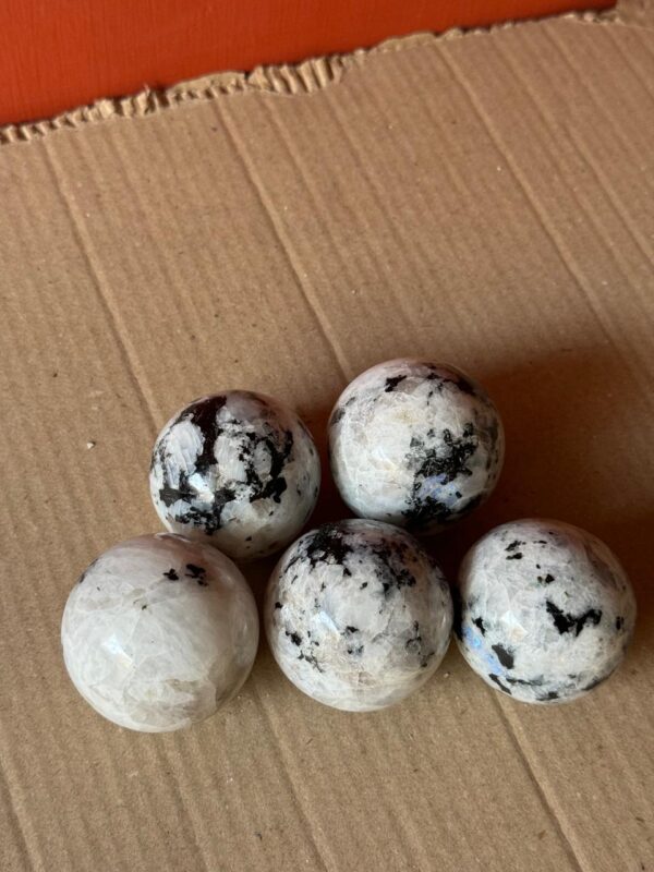 Rainbow Moonstone is a variety of Feldspar known for its iridescent sheen and captivating play of colors, reminiscent of moonlight shimmering on water. It typically exhibits a milky-white to translucent appearance with flashes of blue, purple, pink, and other hues when viewed from different angles. Rainbow Moonstone is revered for its ethereal beauty and metaphysical properties, making it a popular choice for jewelry and spiritual practices. When crafted into spheres, Rainbow Moonstone’s natural allure and energetic benefits are enhanced, creating a mesmerizing crystal sphere.