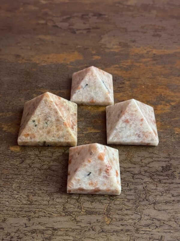The pyramid aids in the manifestation of desires and abundance. Sunstone supports goal-setting, attracts opportunities, and enhances the ability to manifest your dreams and aspirations.